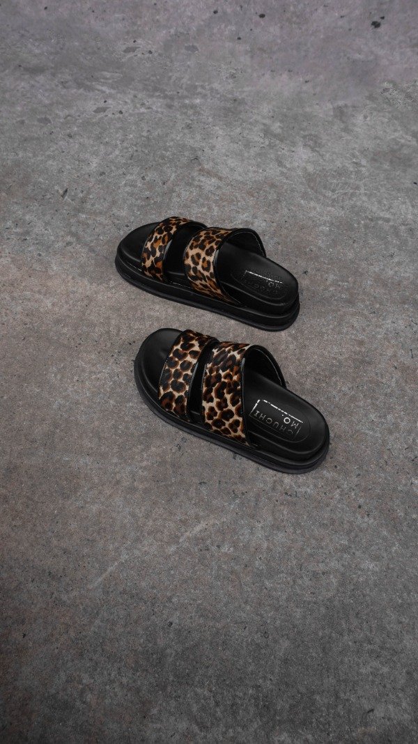Sandalias realizadas en cuero vacuno. Apliques de niquel. Plataforma de eva artesanal. Horma normal. Se recomienda elegir talle habitual.