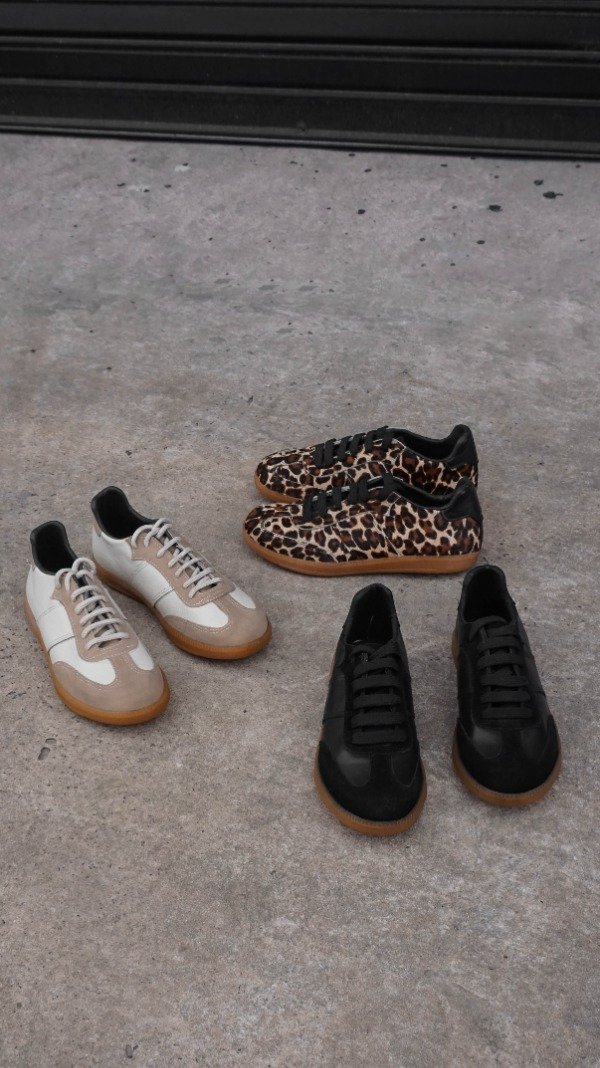 Zapatillas realizadas 100% en cuero vacuno. Apliques de niquel. Horma normal. Se recomienda elegir talle habitual.