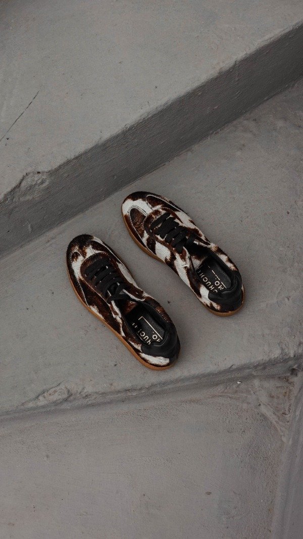 Zapatillas realizadas 100% en cuero vacuno. Apliques de niquel. Horma normal. Se recomienda elegir talle habitual.